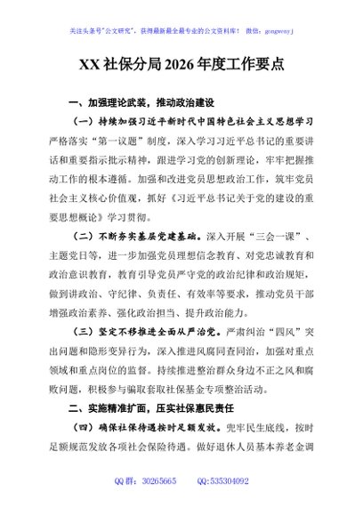 / XX社保分局2026年度工作要点