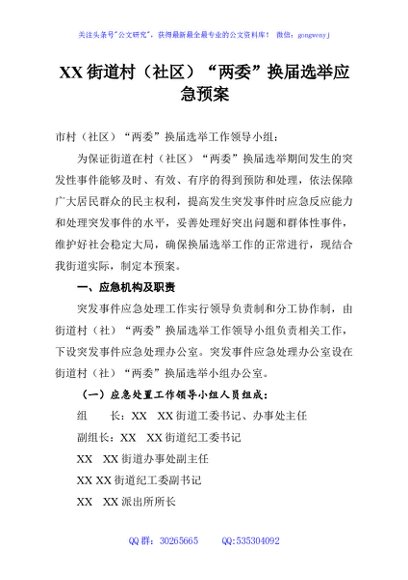 / XX街道村(社区)“两委”换届选举应急预案