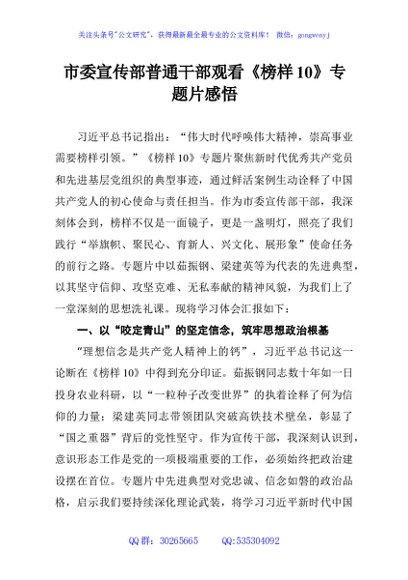 市委宣传部普通干部观看《榜样10》专题片感悟
