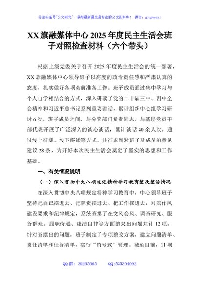 / XX旗融媒体中心2025年度民主生活会班子对照检查材料(六个带头)