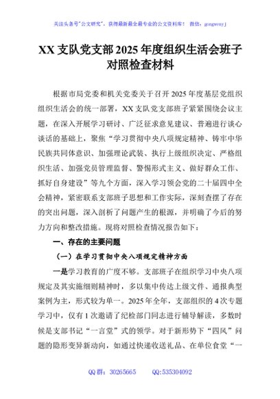 未生成预览图,长按二维码添加 XX支队党支部2025年度组织生活会班子对照检查材料 - 公文研究