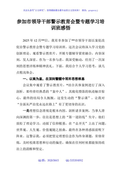/ 参加市领导干部警示教育会暨专题学习培训班感悟