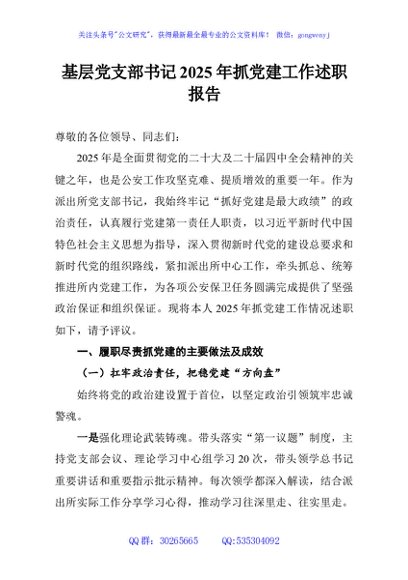 / 基层党支部书记2025年抓党建工作述职报告