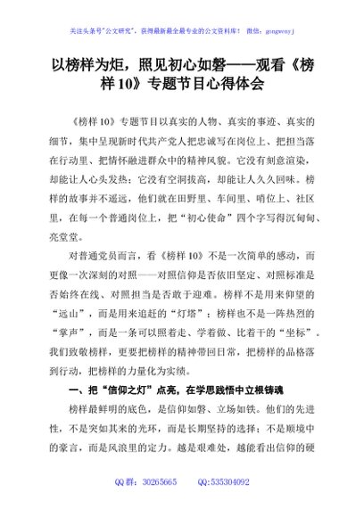 / 以榜样为炬,照见初心如磐——观看《榜样10》专题节目心得体会