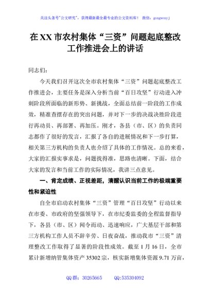 / 在XX市农村集体“三资”问题起底整改工作推进会上的讲话