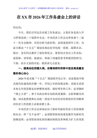 / 在XX市2026年工作务虚会上的讲话