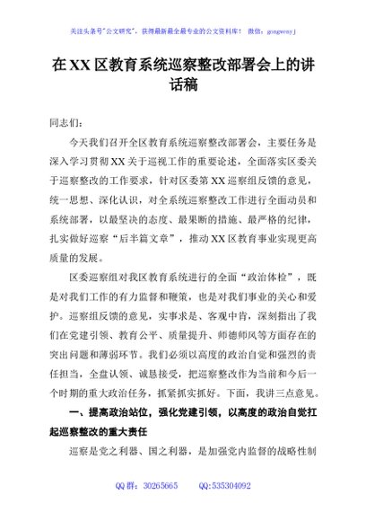 / 在XX区教育系统巡察整改部署会上的讲话稿