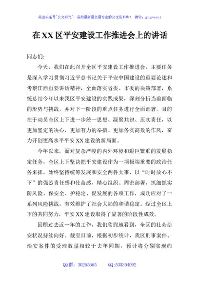 / 在XX区平安建设工作推进会上的讲话