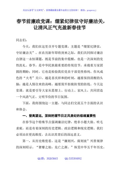 春节前廉政党课:绷紧纪律弦守好廉洁关,让清风正气充盈新春佳节
