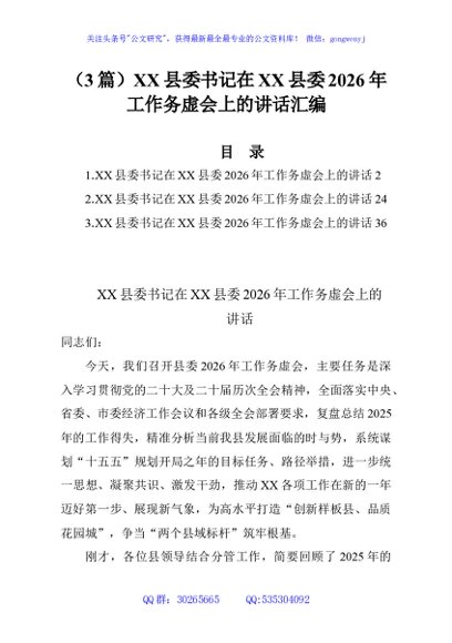 (3篇)XX县委书记在XX县委2026年工作务虚会上的讲话汇编
