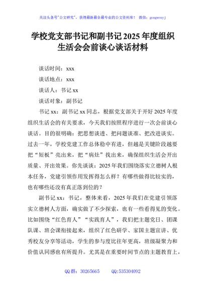 / 学校党支部书记和副书记2025年度组织生活会会前谈心谈话材料