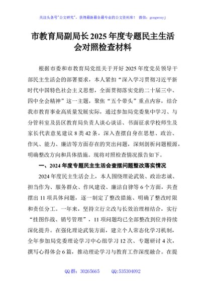 / 市教育局副局长2025年度专题民主生活会对照检查材料