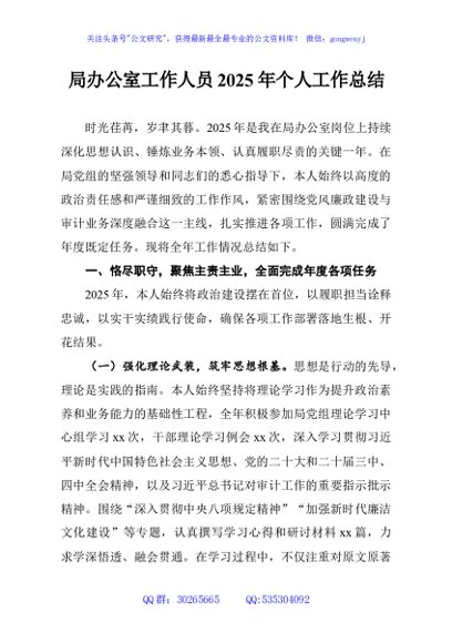 / 局办公室工作人员2025年个人工作总结