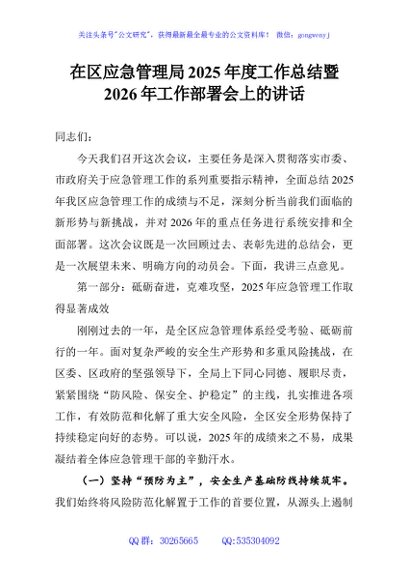 / 在区应急管理局2025年度工作总结暨2026年工作部署会上的讲话