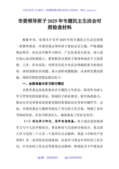/ 市委领导班子2025年专题民主生活会对照检查材料