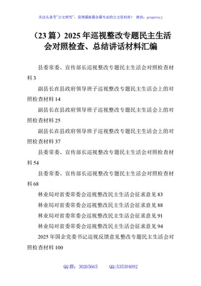 / (23篇)2025年巡视整改专题民主生活会对照检查、总结讲话材料汇编