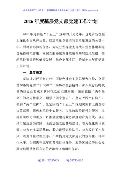 / 2026年度基层党支部党建工作计划
