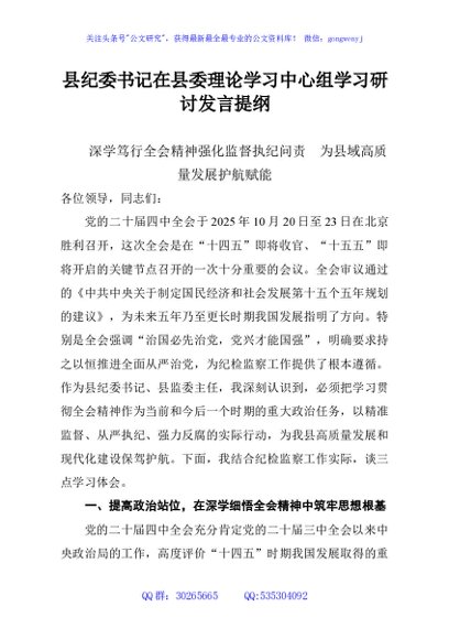 未生成预览图,长按二维码添加 县纪委书记在县委理论学习中心组学习研讨发言提纲 - 公文研究