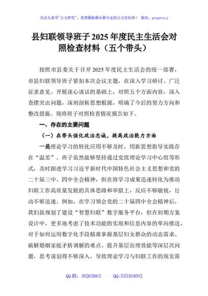 未生成预览图,长按二维码添加 县妇联领导班子2025年度民主生活会对照检查材料(五个带头) - 公文研究