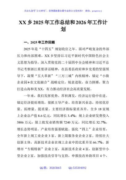 未生成预览图,长按二维码添加 XX乡2025年工作总结和2026年工作计划 - 公文研究