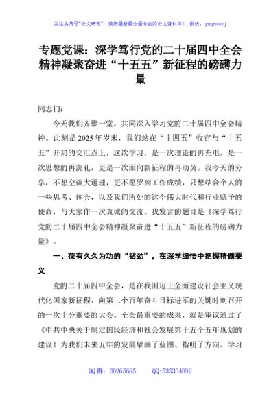 / 专题党课:深学笃行党的二十届四中全会精神凝聚奋进“十五五”新征程的磅礴力量
