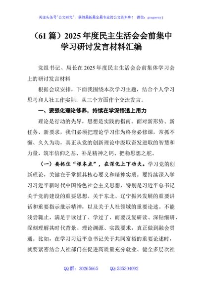 / (61篇)2025年度民主生活会会前集中学习研讨发言材料汇编