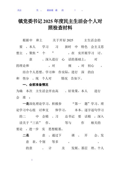 / 镇党委书记2025年度民主生活会个人对照检查材料
