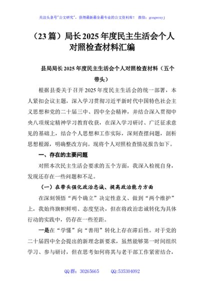 / (23篇)局长2025年度民主生活会个人对照检查材料汇编