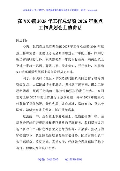 / 在XX镇2025年工作总结暨2026年重点工作谋划会上的讲话