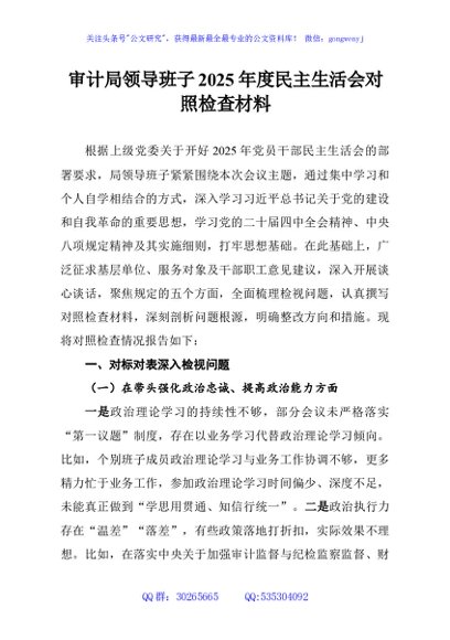 / 审计局领导班子2025年度民主生活会对照检查材料