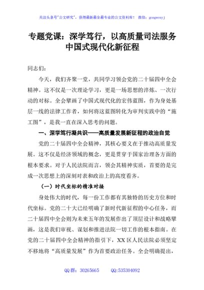 / 专题党课:深学笃行,以高质量司法服务中国式现代化新征程