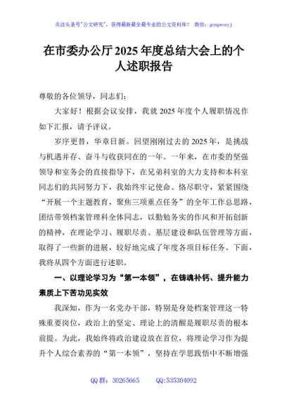 / 在市委办公厅2025年度总结大会上的个人述职报告