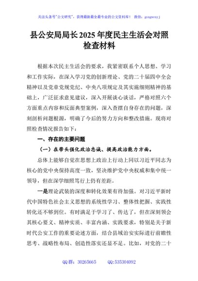 未生成预览图,长按二维码添加 县公安局局长2025年度民主生活会对照检查材料 - 公文研究