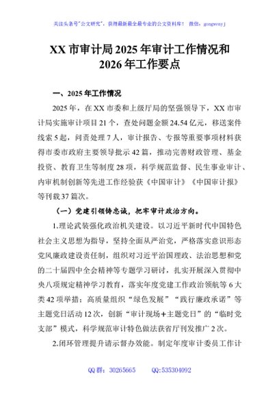 / XX市审计局2025年审计工作情况和2026年工作要点