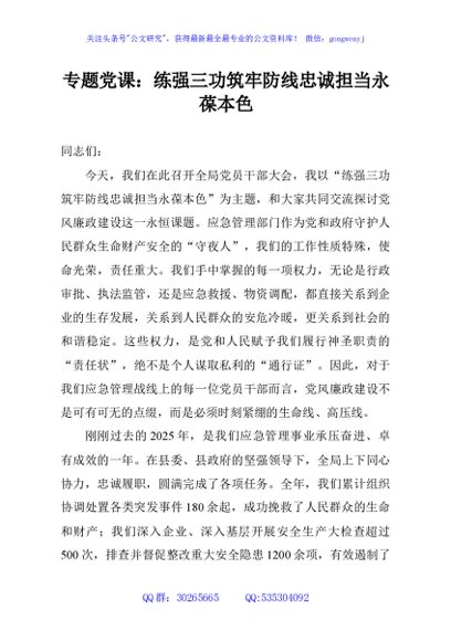 / 专题党课:练强三功筑牢防线忠诚担当永葆本色
