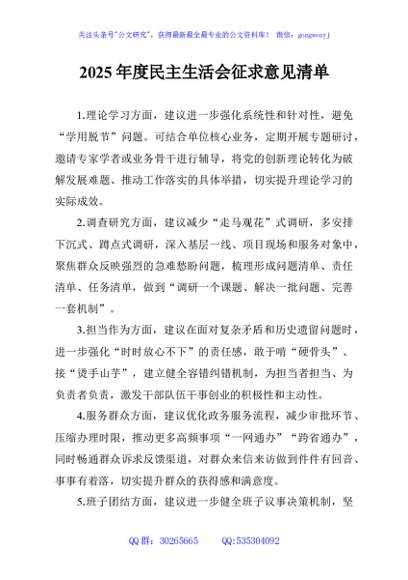 未生成预览图,长按二维码添加 2025年度民主生活会征求意见清单 - 公文研究