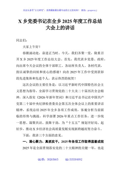 未生成预览图,长按二维码添加 X乡党委书记在全乡2025年度工作总结大会上的讲话 - 公文研究