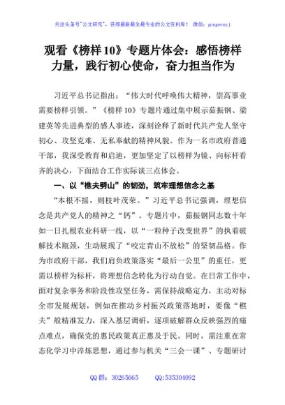/ 观看《榜样10》专题片体会:感悟榜样力量,践行初心使命,奋力担当作为