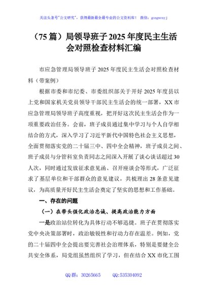 / (75篇)局领导班子2025年度民主生活会对照检查材料汇编