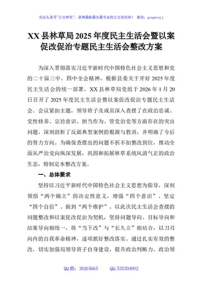 / XX县林草局2025年度民主生活会暨以案促改促治专题民主生活会整改方案