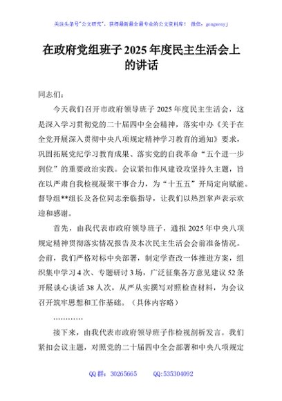 / 在政府党组班子2025年度民主生活会上的讲话