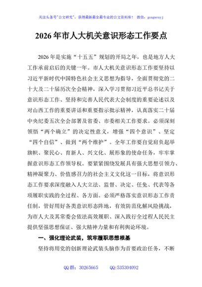 未生成预览图,长按二维码添加 2026年市人大机关意识形态工作要点 - 公文研究