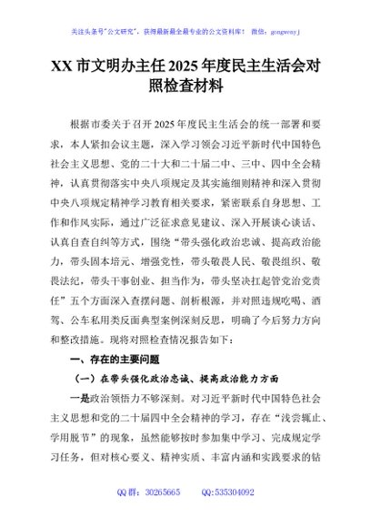 未生成预览图,长按二维码添加 XX市文明办主任2025年度民主生活会对照检查材料 - 公文研究