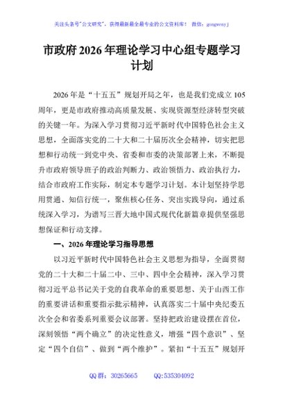 / 市政府2026年理论学习中心组专题学习计划