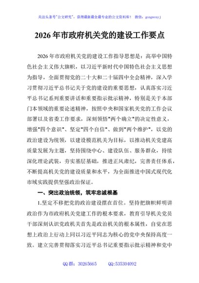 / 2026年市政府机关党的建设工作要点