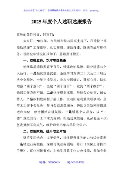 / 2025年度个人述职述廉报告