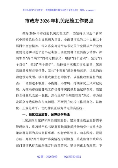/ 市政府2026年机关纪检工作要点