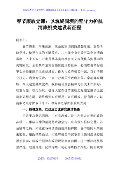 / 春节廉政党课:以筑堤固坝的坚守力护航清廉机关建设新征程