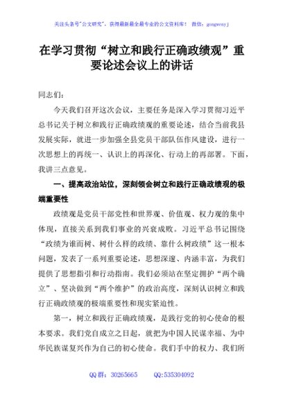/ 在学习贯彻“树立和践行正确政绩观”重要论述会议上的讲话