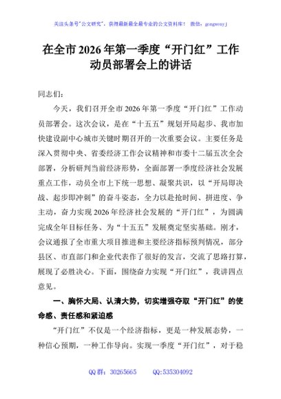 / 在全市2026年第一季度“开门红”工作动员部署会上的讲话